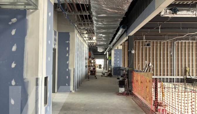 Wagman Construction is providing the general trades package for the new 51,345 SF Academic Learning Center at Penn State Harrisburg Campus, a ground-up facility featuring modern classrooms, student lounge areas, common spaces, and restrooms. The building design incorporates vertical folding glass partitions throughout the interior, along with extensive use of glass and insulated metal panels on the exterior.